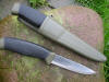 A good survival knife should hold an edge, be versatile, durable, and low cost--just in case you accidentally lose it. It is for these reasons that Frosts Mora Knives, made in Sweden, are favoured by so many primitive skills and wilderness survival experts and practitioners. The knives are so light weight that you hardly notice you have one on your body, yet sturdy and durable for serious woodworking. We supply the Companion with a green and black handle in either stainless or carbon steel. Other colour handles available, but will take up to 7 days delivery. Just e-mail for a price and supply of any other Mora products. For reference look at www.frosts.se